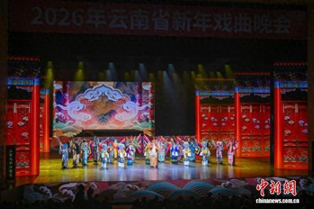 12月28日,2026年云南省新年戏曲晚会昆明市上演,晚会汇聚京剧及滇剧、花灯、彝剧、白剧等剧种,尽显云南戏曲传承创新活力。图为京剧联唱《行云流水》。中新社记者 李嘉娴 摄