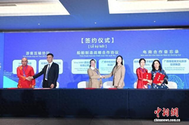 图为签约仪式。翟李强 摄当天,越南政企代表团搭乘邮轮抵达北部湾国际邮轮母港,开启北海之行。代表团通过考察北海银滩、阿萨卡网红城市、老城历史文化街区等重点项目,体验北海在文旅创新、产业升级方面的成果,并与中方政企代表探讨合作机遇。