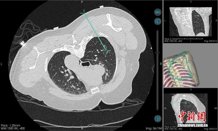 图为机器人引导下实际穿刺路径。广西医科大学第一附属医院 供图当天,该院心胸外科主任阳诺带领消融团队开展手术。他介绍,在术前,穿刺手术机器人系统基于患者CT影像,能自动构建详细的肺部3D立体模型,清晰呈现结节与周围血管、气管等重要组织的位置关系。