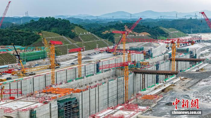 图为平陆运河青年枢纽建设现场。平陆运河集团有限公司 供图2025年,平陆运河建设进入冲刺阶段。地面之上,巨型船闸巍然矗立;地表之下,一个由钢筋混凝土支撑柱构成的“地下森林”已然成形。