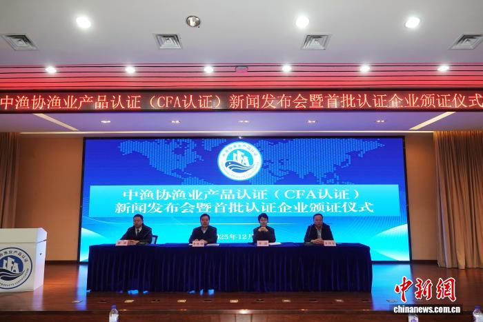 中新网北京12月29日电 (记者 孙自法)中国渔业协会(中渔协)渔业产品认证(CFA认证)体系12月29日在北京发布,这一填补中国渔业行业专业化认证关键空白、实现“从池塘到餐桌”全链条质量管控的重要举措正式推出,标志着中国渔业在标准化建设与质量安全保障领域迈出关键一步。