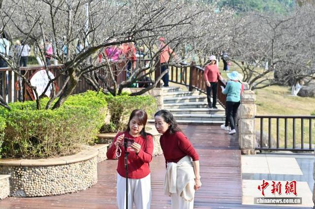 12月30日,“八景风采·萝岗香雪”2026萝岗香雪文化季活动在广州市黄埔区萝岗香雪公园举行。图为游客在萝岗香雪公园游园赏梅。中新社记者 陈楚红 摄