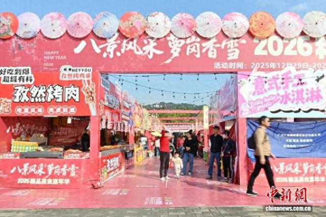 12月30日,“八景风采·萝岗香雪”2026萝岗香雪文化季活动在广州市黄埔区萝岗香雪公园举行。图为活动现场的美食嘉年华吸引游客。中新社记者 陈楚红 摄