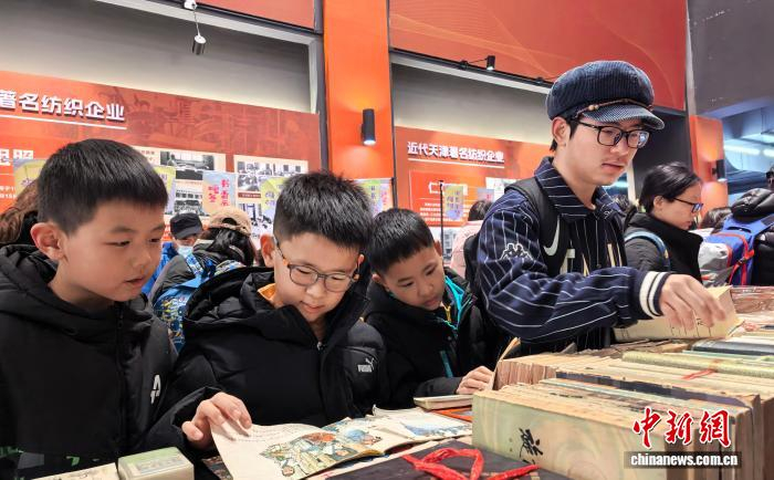 12月28日上午,天津市河东区棉3创意街区的“海河旧书市集”上,小学四年级学生段霖峰和伙伴一起淘书。中新社记者 孙玲玲 摄四年级小学生段霖峰和小伙伴们在此开启一段“淘书之旅”。喜爱历史的段霖峰很快淘到了《如果历史是一群喵》和《明朝那些事儿》,并表示“想再找一本,作为元旦礼物送给自己”。