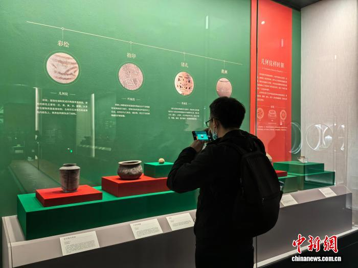 民众参观展出的展品。 中新网记者 钟升 摄吴文化博物馆馆长陈曾路表示,中华文明,绵延千载,其博大精深不仅蕴藏于经史子集、典章制度,更生动镌刻在我们日用而不察的纹饰纹样中。本次展览以“五行始终”为纲,以时间为纬,希望通过器物之上纹样的演变,立体呈现中华民族审美风尚的变迁、文化心理的积淀与时代精神的跃动。