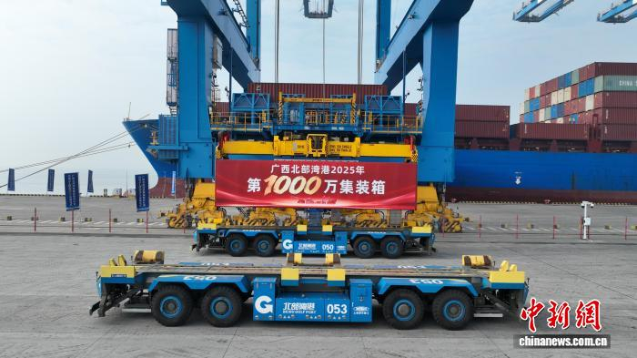 中新网南宁12月30日电(记者 杨陈)年终岁末,广西北部湾港集装箱吞吐量突破1000万标箱,第100条集装箱航线——北部湾港至柬埔寨贡布航线首航,2025年第10218列海铁联运班列发车。“一条通道激活一片海”,北部湾国际门户港与西部陆海新通道深度联动,正构建起中国西部地区与东盟互联互通的物流大动脉。