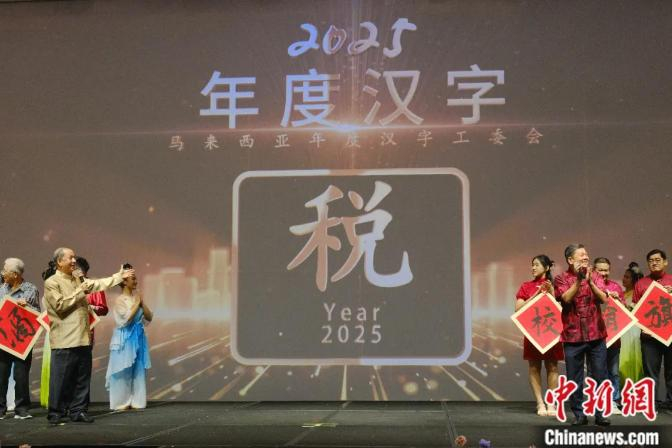 当地时间2025年12月14日,马来西亚年度汉字工委会在雪兰莪州理想会展中心揭晓今年年度汉字,“税”字当选。中新社记者 陈悦 摄