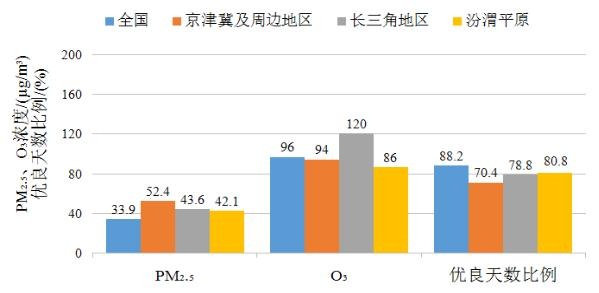 11月,汾渭平原13个城市PM2.5平均浓度为42.1微克/立方米,同比下降17.0%;O3平均浓度为86微克/立方米,同比下降7.5%;平均优良天数比例为80.8%,同比上升3.1个百分点;平均重度及以上污染天数比例为0.8%,同比上升0.3个百分点。由沙尘天气导致的平均超标天数比例为11.8%,其中重度及以上污染天数比例为0.5%。