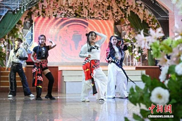 图为全体学生表演舞蹈《团结花开彩云南》。中新社记者 李嘉娴 摄