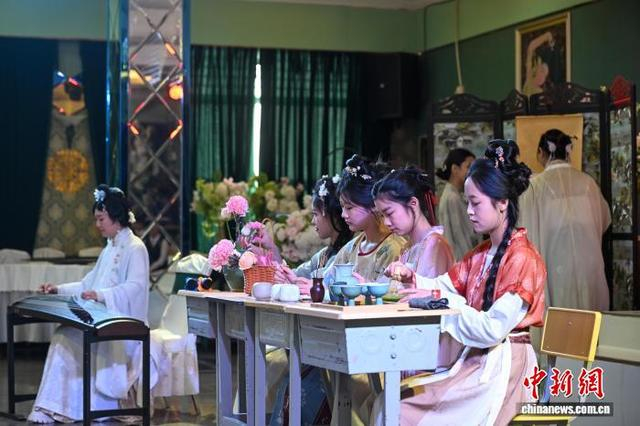 图为来自缅甸、越南、老挝的学生表演空灵鼓演唱《声声慢》。中新社记者 李嘉娴 摄