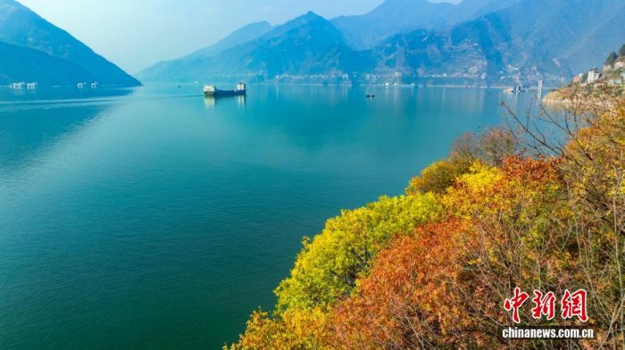 资料图:2025年11月19日,船舶航行在长江西陵峡水域。彭强 摄——长江大保护十周年
