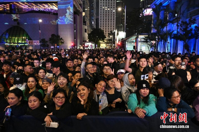 12月31日晚,在香港尖沙咀、中环、铜锣湾一带,民众外出跨年,迎接2026年的到来。图为民众在中环遮打道一带。中新社记者 李志华 摄