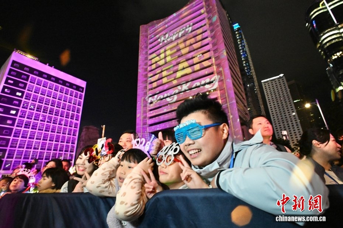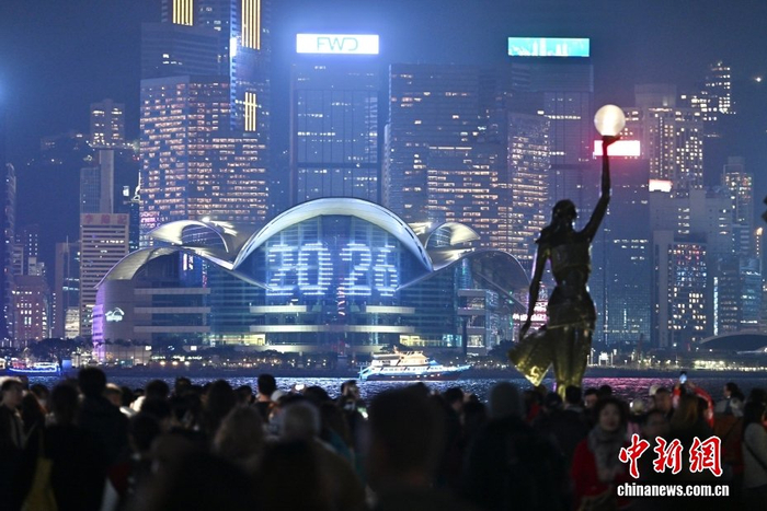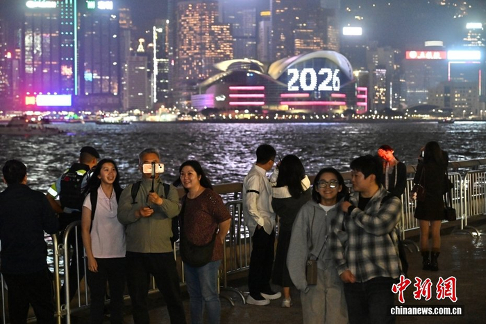 12月31日晚,在香港尖沙咀、中环、铜锣湾一带,民众外出跨年,迎接2026年的到来。图为民众在尖沙咀星光大道一带。中新社记者 李志华 摄