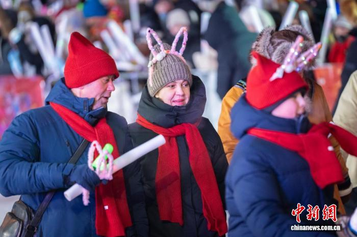 中新网黑河1月1日电(那文晶 陶馨元)2025年12月31日晚,黑龙江黑河世纪广场灯光璀璨、人潮涌动,“跨江·跨国·跨年夜”系列活动点燃冬夜热情。
