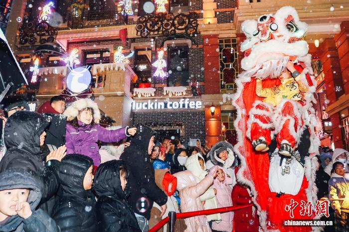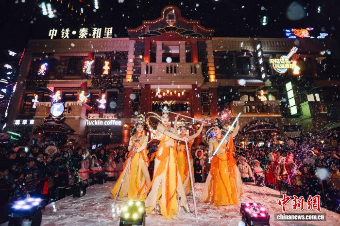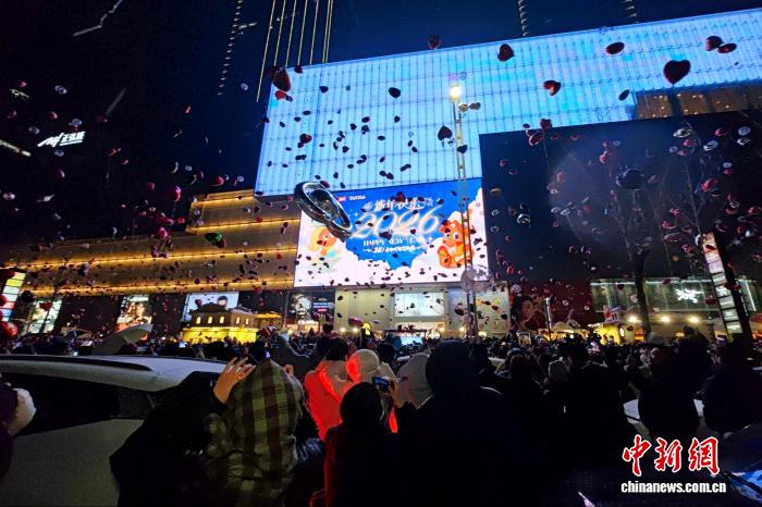 2025年12月31日晚,河南郑州中铁·泰和里主题街区,“跨年奇妙夜”Drama派对氛围浓厚,市民和游客参与互动演出,共同迎接2026年的到来。 中新社发 胡涛 摄