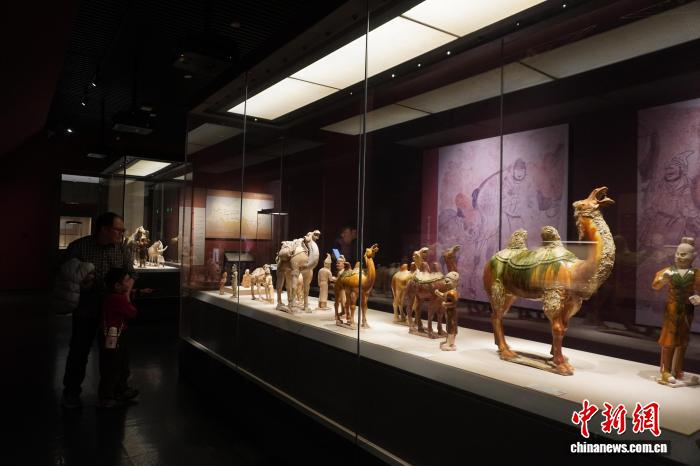 2025年12月31日晚间,河南郑州千名观众汇聚在河南博物院,参加“‘马’上启程·豫博奇妙夜”活动,共度文化感、仪式感十足的跨年夜。图为观众在展厅夜观文物。中新社记者 韩章云 摄