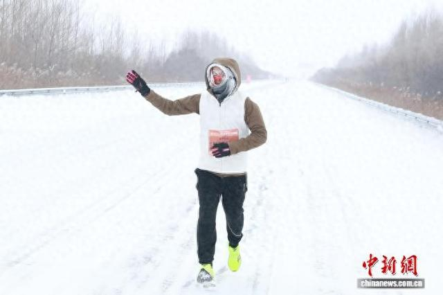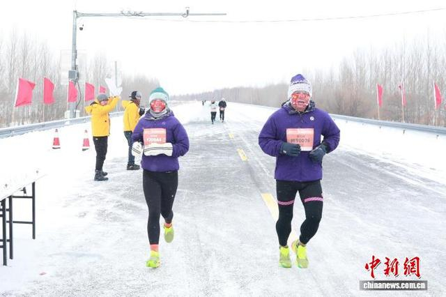 1月1日,2026东极新年马拉松在黑龙江省佳木斯抚远市鸣枪开跑,2000名跑者在冰雪竞技中挑战极限,以拼搏之姿开启马年新篇。图为选手在冰天雪地间跑马拉松。 朱哲昊 摄