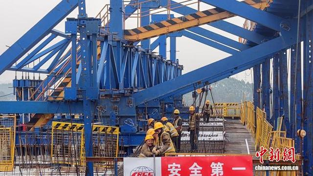 图为元旦假期,工人仍在紧张施工的五福特大桥2号桥。陈利华 摄