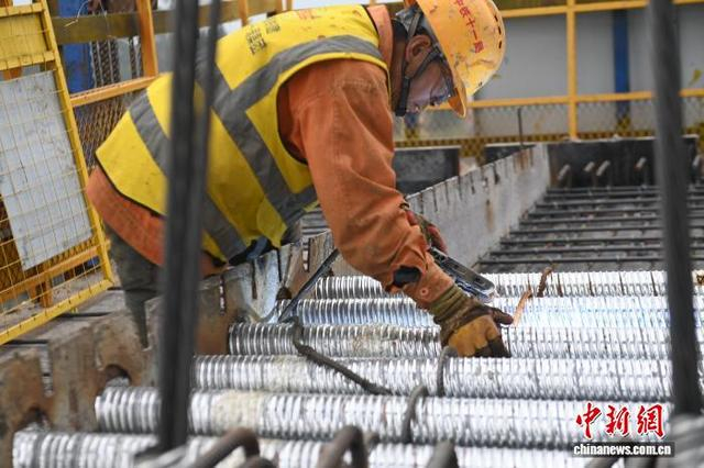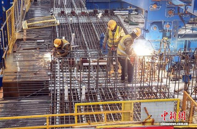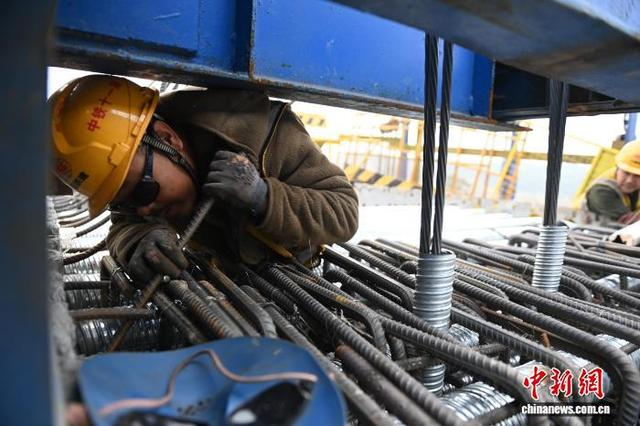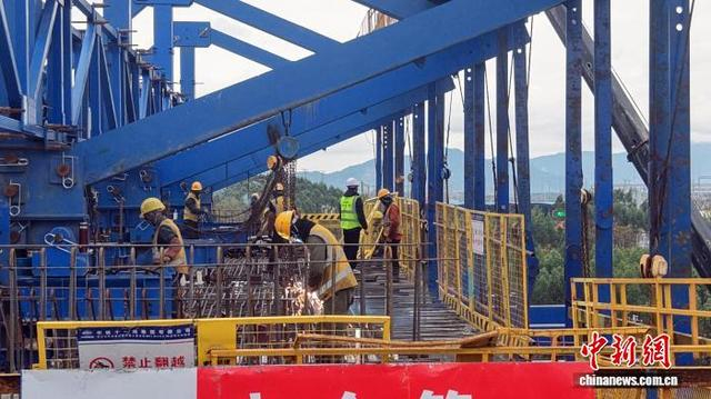 图为五福特大桥2号桥上,工人正在施工。中新网记者 蒋雪林 摄