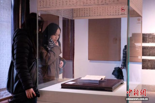 1月1日,游客了解《明文案》内容。近日,“天一阁·开卷”馆藏珍贵古籍系列展在浙江宁波举行,展出黄宗羲稿本《明文案》。现藏于天一阁的《明文案》稿本,全书共207卷,现存共188卷,体例严整,包罗万象。2008年,这部书被列入第一批国家珍贵古籍名录。中新社记者 林波 摄