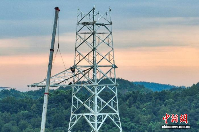 作业人员在开展吊装组塔作业。李萌 摄据悉,阿坝—成都东特高压工程起于阿坝1000千伏变电站,止于成都东1000千伏变电站,线路全长734.8公里,途经4市(州)11个县(区)。作为服务川西清洁能源高质量发展的核心载体,工程预计2026年底建成投运。投运后,阿坝通道送电能力将提升一倍以上,可有效满足阿坝水电群及新能源基地并网需求,将清洁电能稳定输送至成都等负荷中心。(完)