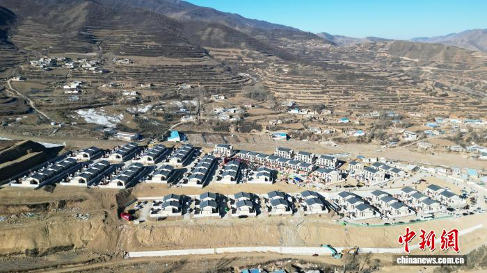 2025年12月29日,甘肃省兰州市榆中县举行山洪灾害灾后重建集中搬迁入住活动,全县6个集中安置点325户受灾民众全部搬进新居。图为航拍榆中县旧庄沟村集中安置点。(无人机照片) 九美旦增 摄