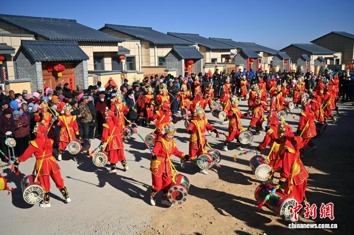 2025年12月29日,在榆中县旧庄沟村集中安置点,民众观看文艺演出。 九美旦增 摄几天前,旧庄沟村于举办了“温暖过冬 安心过节”灾后重建集中搬迁入住活动。现场锣鼓喧天、鞭炮齐鸣,各类演艺轮番上阵。