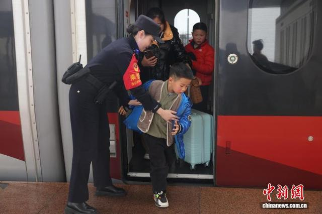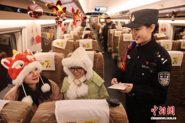 2026年1月1日,由横店火车站开往西安北火车站的G2026次列车上,西安铁路公安局西安公安处乘警支队“长安花”大队乘警李颖穿梭在人群中。列车进站时,她做好站台治安安全隐患排查,列车启动后,她又逐节车厢开展安全巡查,提醒旅客看管好随身行李,谨防财物丢失。面对旅客的各类咨询和求助,她始终耐心解答、倾力相助,帮老人提行李、为孩童寻座位、调解旅客间的小摩擦…… 一件件暖心小事,让元旦假期的旅途洋溢着温情。同时,她还结合典型案例,向旅客普及反诈防骗、防盗防扒等安全知识,用通俗易懂的语言筑牢旅客的安全防线。图为乘警李颖疏导客流。张鑫 摄