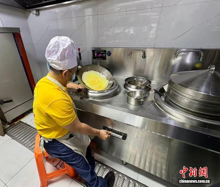 图为翁文雄在后厨忙碌。彭莉芳 摄翁文雄坦言,尽管烹制这些菜颇费心思,不仅要少油少盐、注重营养,每日搭配还不能重样,但菜单上,一份包含两素一荤的餐食,售价仅9.9元。