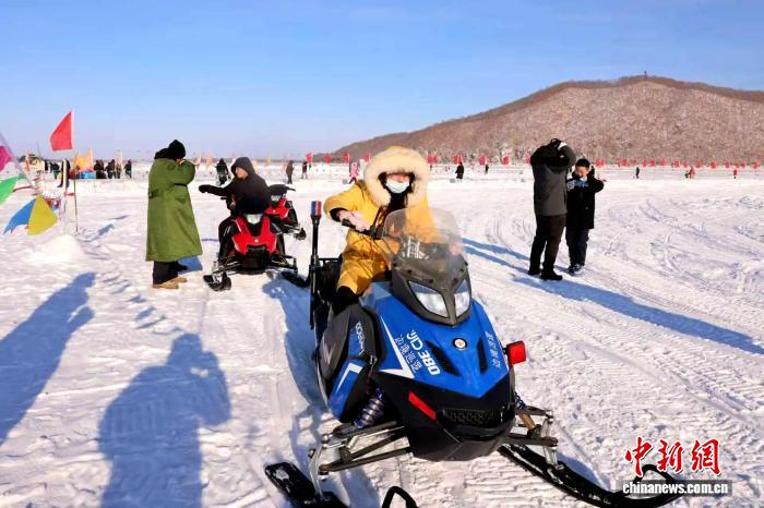 游客在饶河四排赫哲莫日根雪乡体验雪地摩托。 饶河县融媒体中心供图双鸭山市游客吕梓梦表示,家门口就能玩到大滑梯,还有冰雪坦克,玩得很开心,下次还来玩。