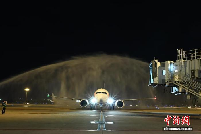 1月1日晚,青岛机场联合山东航空开通直飞越南胡志明市往返航线。图为该航线首班飞机通过“水门礼”。(山东航空供图)据青岛机场航空市场营销委员会规划发展专员段会臻介绍,两条青岛直飞越南胡志明市航线分别由青岛航空、山东航空执飞,单程飞行时间约5个小时,较中转出行能节省近一半时间,两条航线的每周航班量共14架次。