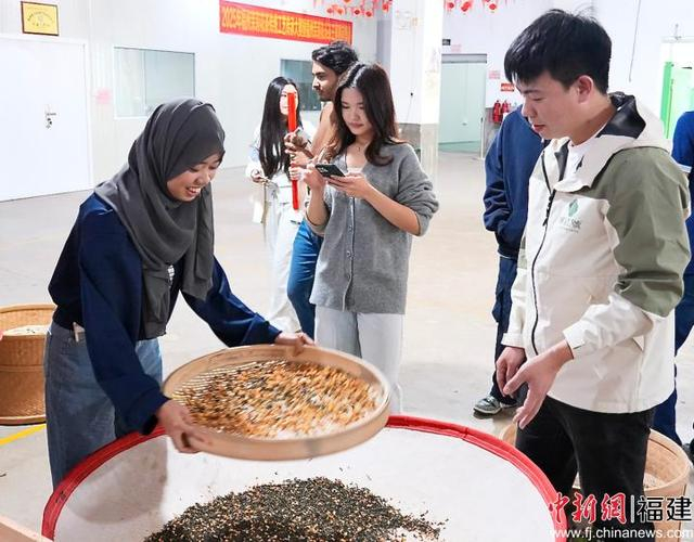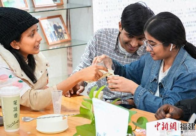 图为来自福州外语外贸学院的留学生(左)在体验茉莉花茶制作中筛花工序。留学生们将本国饮食特色融入茉莉花茶,调制出独具风格的“茉莉奶茶”,来自印度尼西亚、乌兹别克斯坦等十余个国家的留学生将本国饮食特色融入茉莉花茶,调制出独具风格的“茉莉奶茶”。在袅袅的茶香中,中外青年学子各抒己见,畅谈各自国家的茶俗文化,并围绕非遗活化、IP打造、数字营销等话题进行思想碰撞。(完)