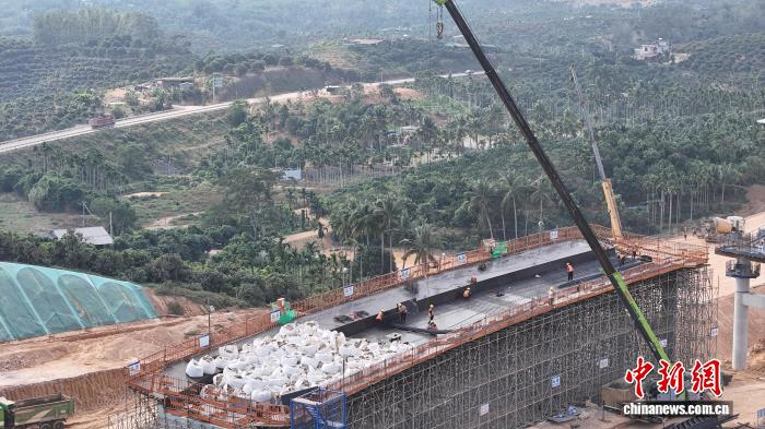 1月2日,G98海南环岛高速公路大三亚段扩容工程土建2标项目正在建设中。中交二公局 供图中交二公局项目负责人表示,现在正是施工“黄金期”,项目部锚定工期节点,通过科学统筹节假日施工安排,确保建设稳步推进。目前,该标段已完成30%路基工程,86%桥梁桩基,以及35%桥梁下部结构施工,开始上部结构预制箱梁、现浇箱梁施工。