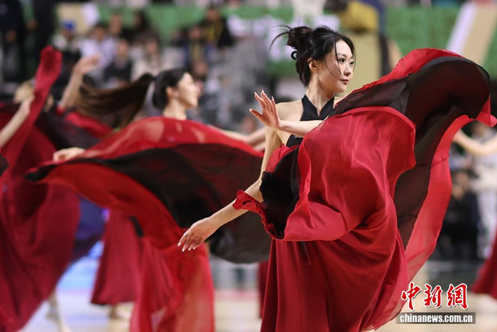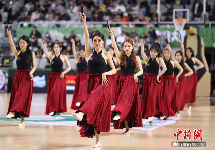1月2日晚,在江苏南京举行的2025-2026赛季中国男子篮球职业联赛(CBA)常规赛比赛中,南京天之蓝队(绿衣)主场104比82战胜长白山恩都里队(白衣)。图为啦啦队表演舞蹈,为比赛球队加油助威。中新社记者 泱波 摄