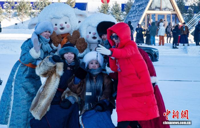 2025年12月21日,内蒙古呼伦贝尔,来自广东的游客与冰雪那达慕吉祥物“呼伦小羊”合影。 吕昊俊 摄绿色低碳已闯入2026年冰雪产业前沿,中国许多大型滑雪场开始采用光伏发电供能,升级为高效节水型造雪系统,并推行“无痕滑雪”等生态友好理念。