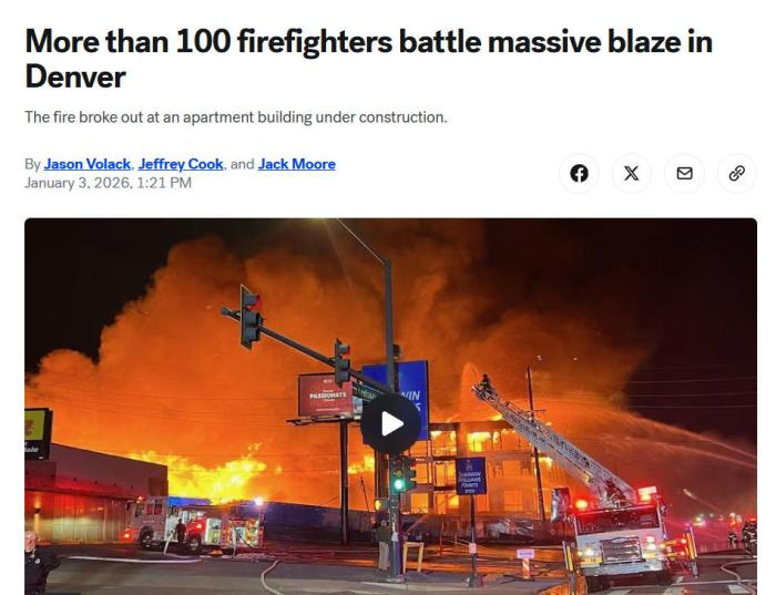 中新网1月3日电 据美国广播公司(ABC)报道,当地时间2日,美国科罗拉多州丹佛市一在建公寓楼失火,超过100名消防员参与灭火。