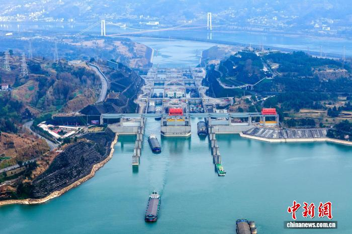 2026年1月1日,船舶有序通过三峡船闸。王罡 摄补水效益方面,三峡水库充分发挥战略淡水资源库作用,在消落期控制日均出库流量稳定维持在7000立方米每秒以上,累计为中下游补水116.7亿立方米。三峡枢纽统筹开展三次保灌溉补水专项调度,最高抬升沙市至湖口江段水位2米左右,有力保障长江中下游沿线灌溉用水安全。