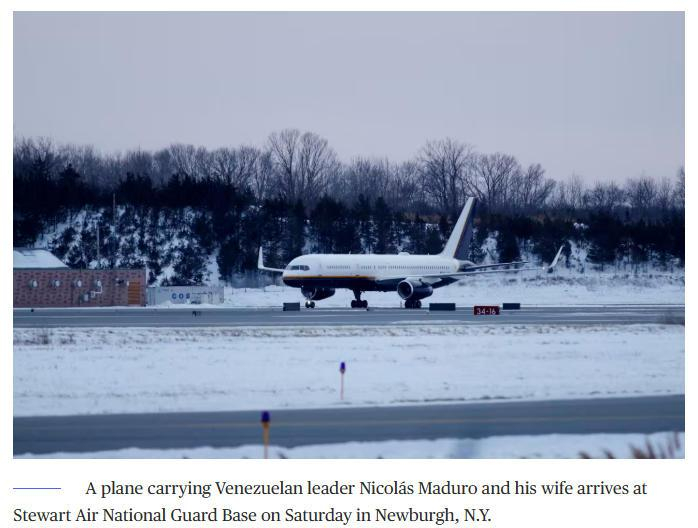 中新网1月4日电 据美国全国广播公司(NBC)报道,当地时间1月3日,载有委内瑞拉总统马杜罗及其夫人的美国军用飞机,已抵达美国纽约。