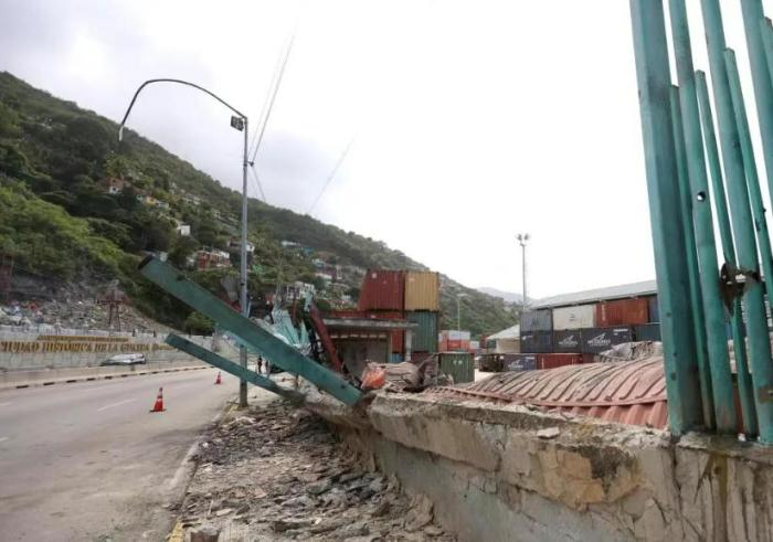 这是1月3日在委内瑞拉拉瓜伊拉港拍摄的空袭造成的建筑残骸。