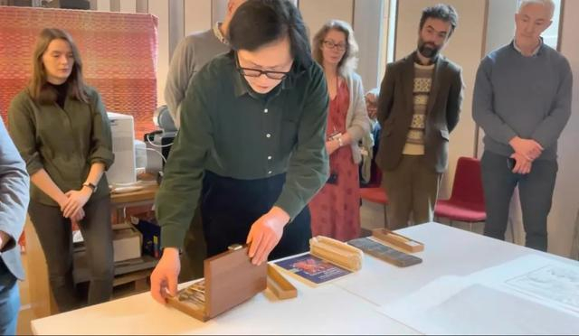2023年2月17日,应牛津大学博德琳图书馆之邀,何为民介绍了黑龙江省书画院(省美术馆)发行的《呼兰河传》雕版印手工书与中国雕版印刷源流。受访者供图