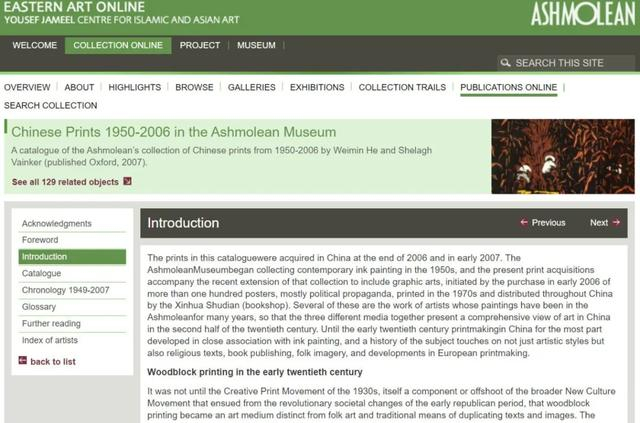 何为民独立策划的《1950-2006阿什莫林博物馆藏中国版画展》被数字化赋能,在阿什莫林博物馆网站永久线上展出。阿什莫林博物馆网站截图