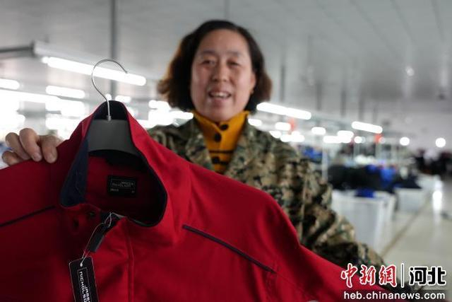 图为在河北省隆尧县双碑乡双碑村,一家制衣厂内一名工人正在展示制好的衣服。 王雪 摄近年来,隆尧县依托防止返贫就业攻坚行动的政策东风,主动对接企业需求,在车间建设、技能培训、订单对接等方面给予全方位支持,帮助企业解决发展难题。同时,针对脱贫群众的就业需求,精准匹配岗位,让难以外出务工的群众实现了就近就业,稳稳端住了“致富饭碗”。