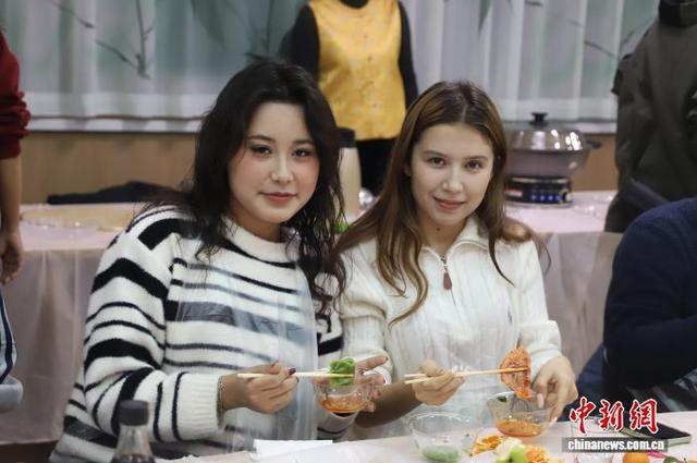 新疆科技学院举办“礼乐交融·情谊联心”——“三进两联一交友”传统文化体验活动。图为学生们在“团圆饺里·情更浓”环节共享亲手制作的饺子。新疆科技学院供图