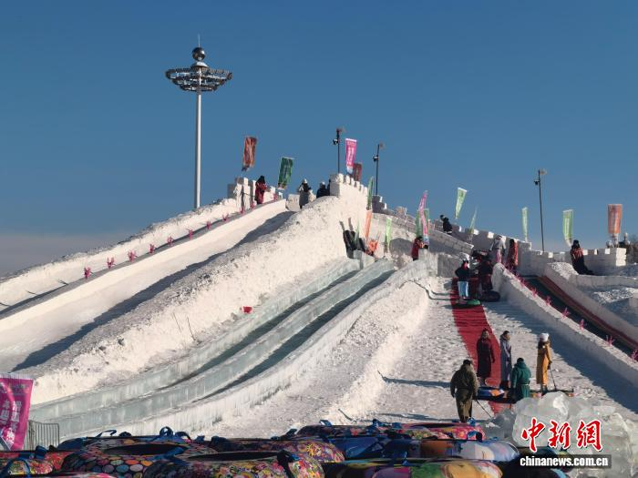 图为游客在冰滑梯上玩耍。冯丽丽 摄据悉,今年冬季,通辽市计划推出9个主题100多项文旅活动。当地正通过“冰雪+”模式,致力将“冷资源”转化为“热产业”,助力城市形象升级与消费增长。