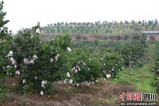 中新网四川新闻1月6日电(吴平华 刘怡)当前正值柑橘生长关键期,在宜宾翠屏区思坡镇心宁村晚熟柑橘示范基地内,漫山遍野的柑橘树上挂满了整齐的套袋,技术管理员赖亮正带领村民们仔细检查套袋密封情况,为柑橘过冬抗寒、保产丰收筑牢防线。