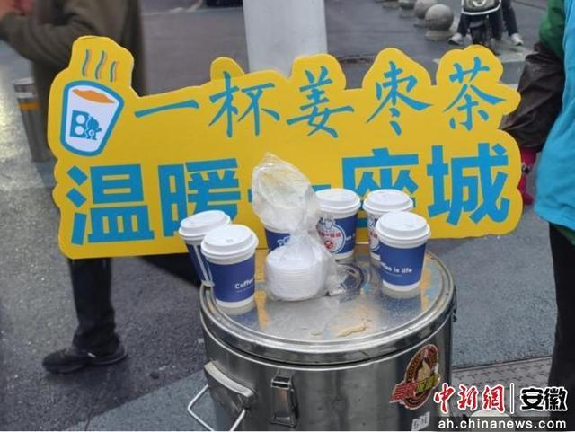 志愿者分赴马鞍山市三县三区的主要公交站点和交通路口,为在寒风中辛勤工作的公交司机、环卫工人、交警、城管队员、快递小哥等群体送上一杯姜枣茶。