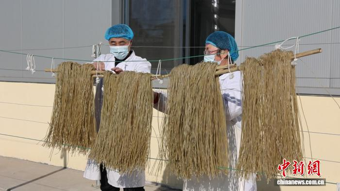 工人将冷却后的粉条整齐地挂在晾晒架上。庞亚鑫 摄“自动化和面机将淀粉与水精准配比搅拌,漏粉机均匀地漏出细长的粉条,落入锅中,然后被捞出冷却,最后整齐地挂在晾晒架上。每一个环节都经过严格把控,既保留了手工粉条的口感筋道,又通过标准化生产保证了品质上乘。”山西裕华红薯粉条加工厂负责人裴奇奇介绍。