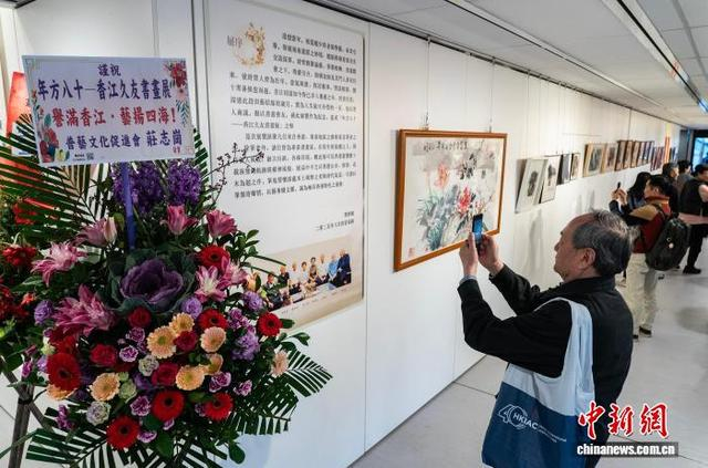 1月10日,“年方八十 香江久友书画展”在香港中央图书馆开幕,本次书画展汇集梁君度、何洵瑶、邓伟雄、何一明、梁锡源、陈青枫、黄孝逵、洪德力、卢清远9位同生于1946年(农历丙戌狗年)的香港和岭南地区知名艺术家的作品,旨在推动香港和内地的文化交流。图为作者代表何洵瑶在开幕式上致辞。中新网记者 侯宇 摄