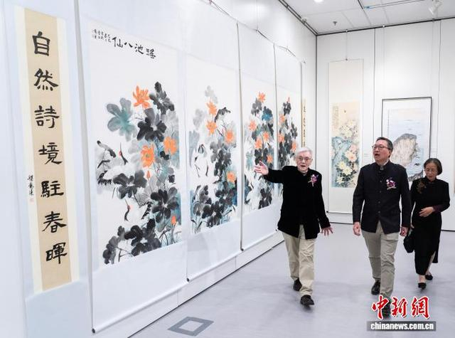 图为观众欣赏参展作品。中新网记者 侯宇 摄