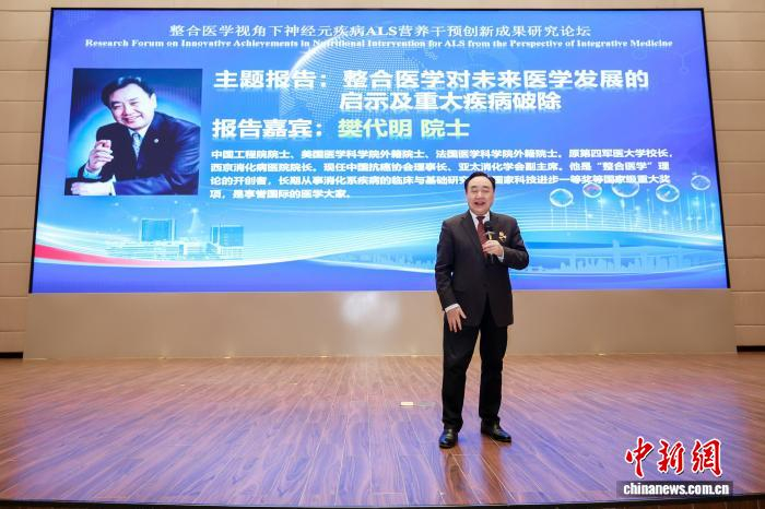 活动现场。主办方供图如今,“渐冻症”受到医学界与社会公众的高度关注。在这种罕见病无法被现代医学所攻克的前提下,整合医学成为罕见病诊疗与管理的重要方向与核心策略。论坛现场,中国工程院院士樊代明以《整合医学对未来医学发展的启示及重大疾病破除》为题发表了主旨演讲,阐述了整合医学在应对复杂疑难疾病中的关键作用。